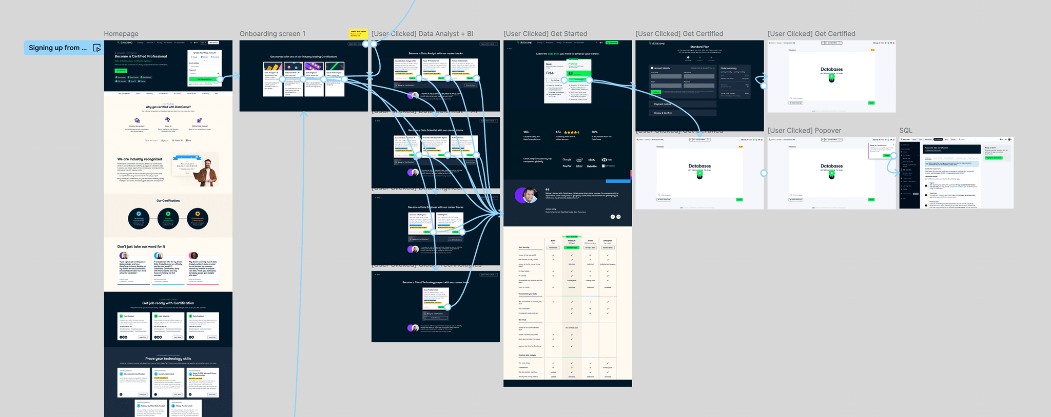 Our onboarding process was the same, no matter which of DataCamp's products you were signing up to use. This meant that even if you were signing up from a Certification page because you were interested in getting certified, your onboarding process wouldn't allow you to sign up for one, instead only focusing on learning materials and signing you up for a course.