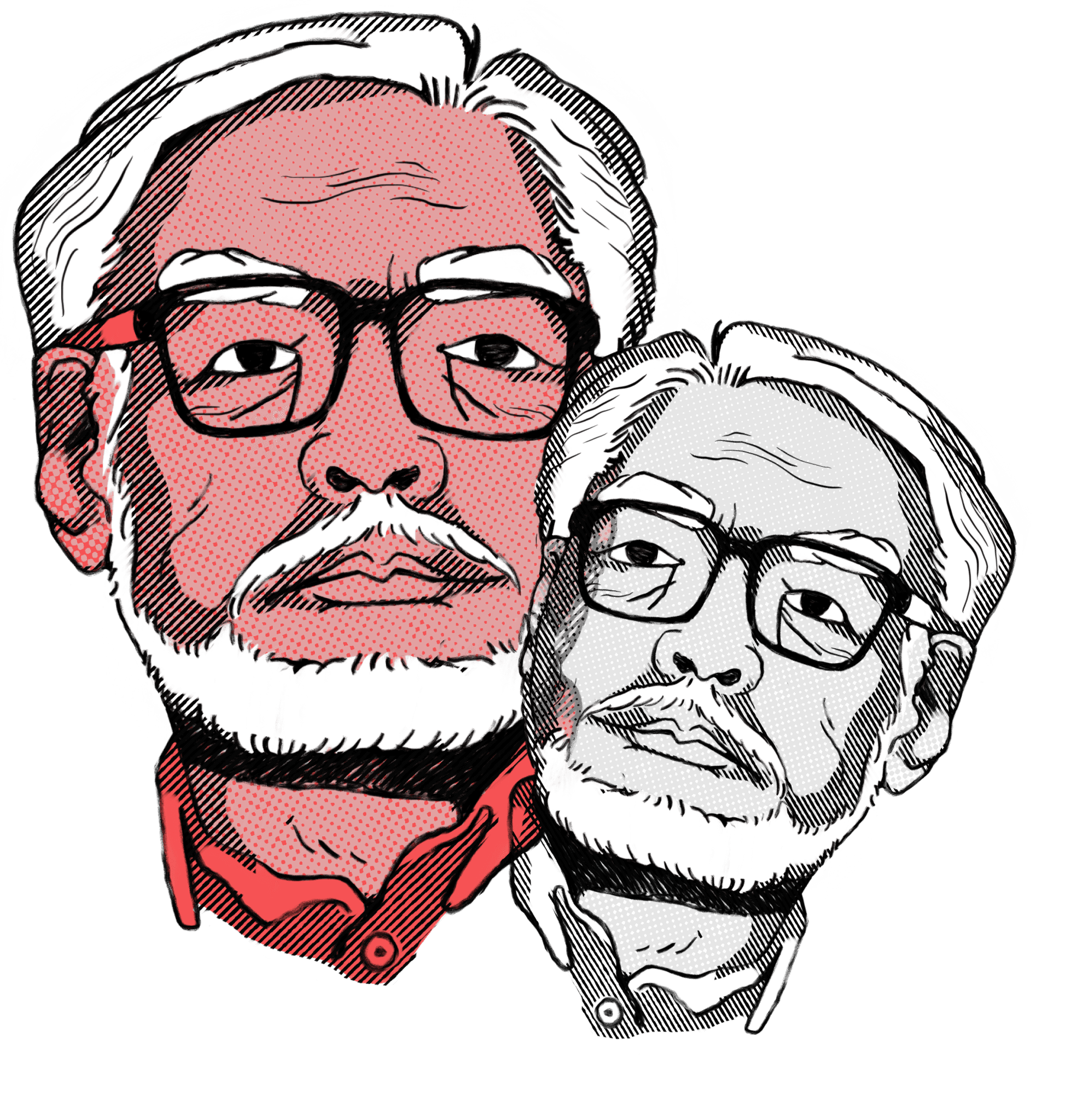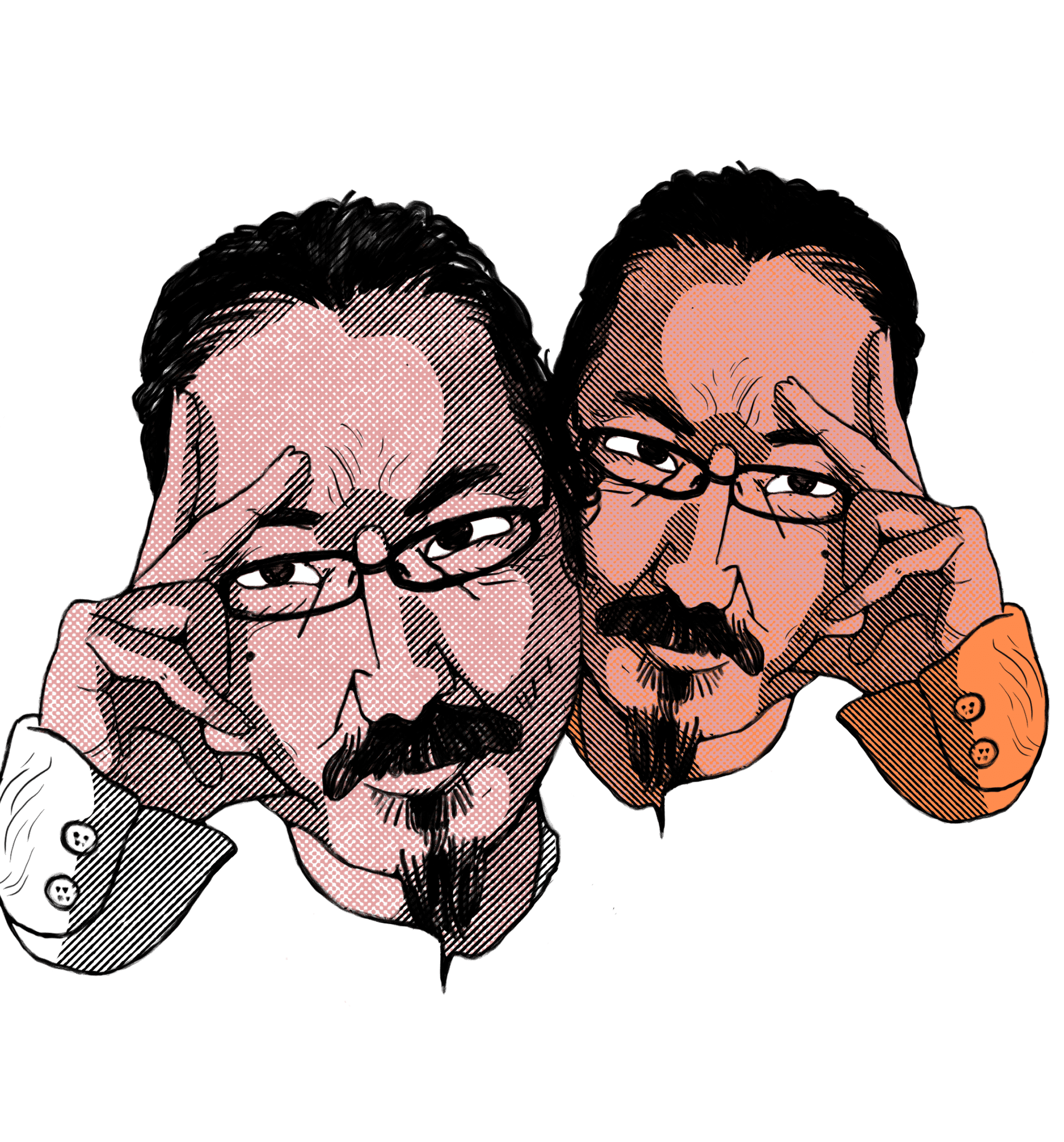 These were based on photos of the two, which I stylised and simplified to better fit a poster context. I then re-drew the sketches digitally to refine & polish.